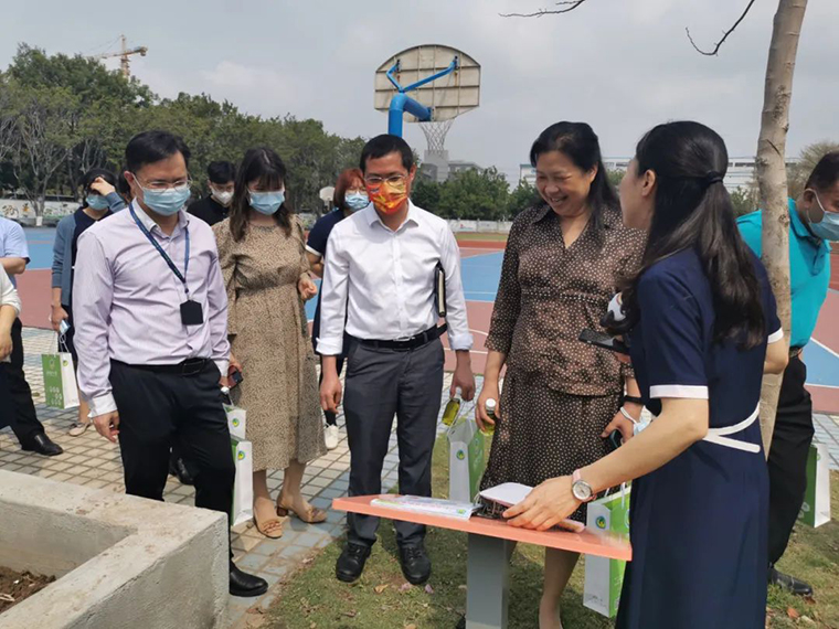 調(diào)研組查看順德區(qū)鳳翔小學(xué)勞動(dòng)實(shí)踐基地建設(shè)情況。圖片來(lái)源:佛山市文明辦