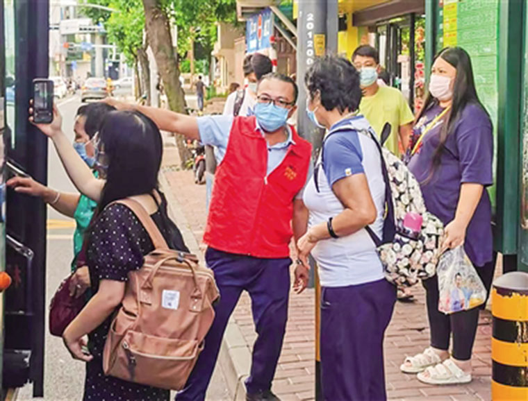 7月以來,佛山公交在全市范圍內(nèi)積極開展文明交通志愿服務(wù)。每日早晚高峰期,這群志愿者風(fēng)雨不改,準(zhǔn)時出現(xiàn)在公交站點,陪伴市民朋友候車。他們給上下車不便或有需要的乘客提供幫助,提醒乘客佩戴口罩、指引大家按1米線排隊候乘,或指引市民配合測量體溫、做好乘車掃碼工作,或為站點方向不明的市民提供導(dǎo)乘服務(wù)。