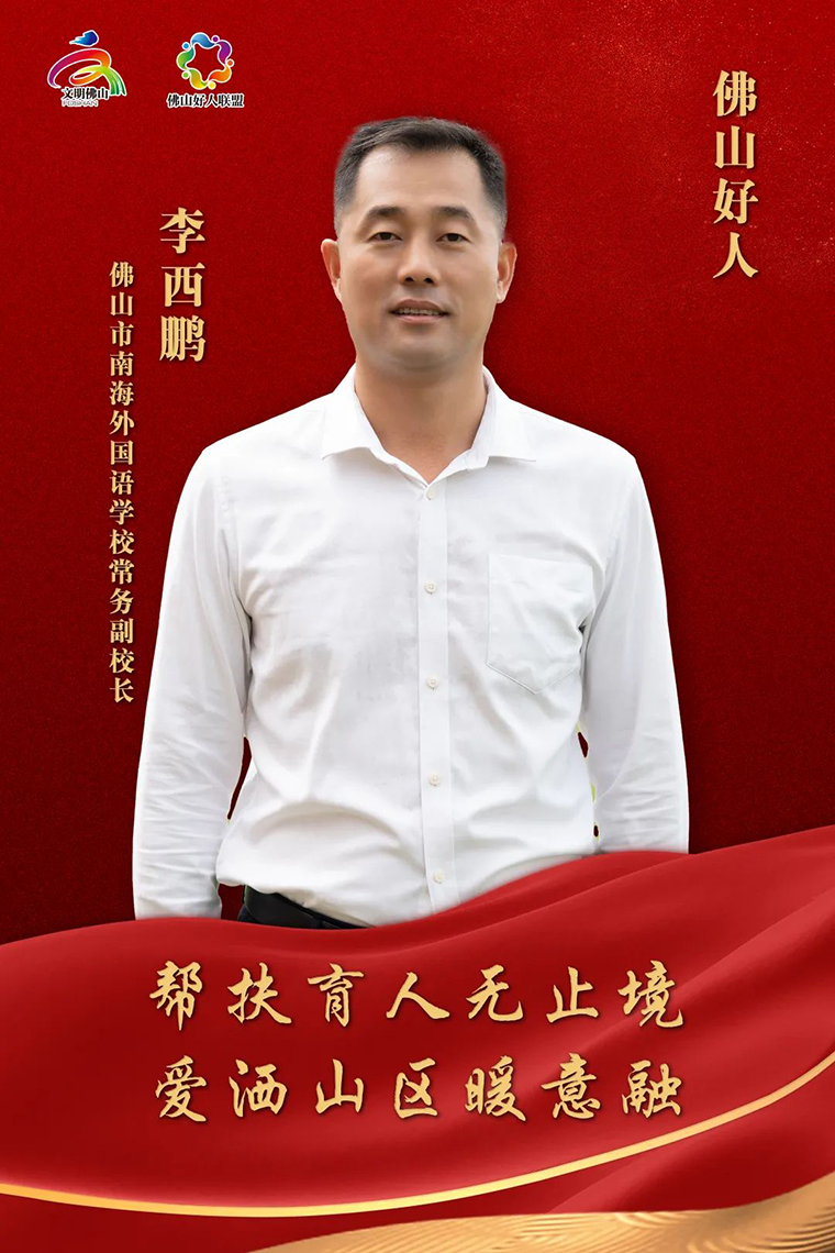 佛山市南海外國(guó)語學(xué)校常務(wù)副校長(zhǎng)、廣東省李西鵬名教師工作室主持人李西鵬,從教20余載,在工作中做好事,在生活中做好事,堅(jiān)持為一線師生排憂解難,為區(qū)域教育發(fā)展貢獻(xiàn)力量。