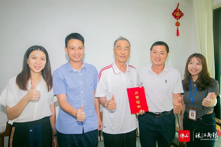 慰問組成員向張世驥頒發(fā)點贊證書。