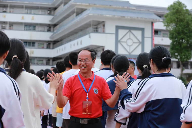 2023年6月7日,賴良才與2023屆高考生擊掌加油、鼓勁。圖片來(lái)源:文明佛山
