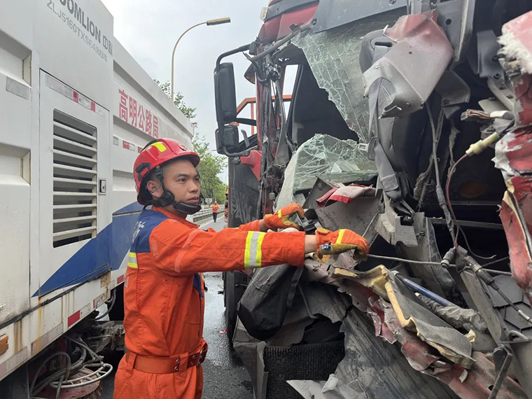 馬福鴻處理交通事故搶險(xiǎn)救援。圖片來源:文明佛山