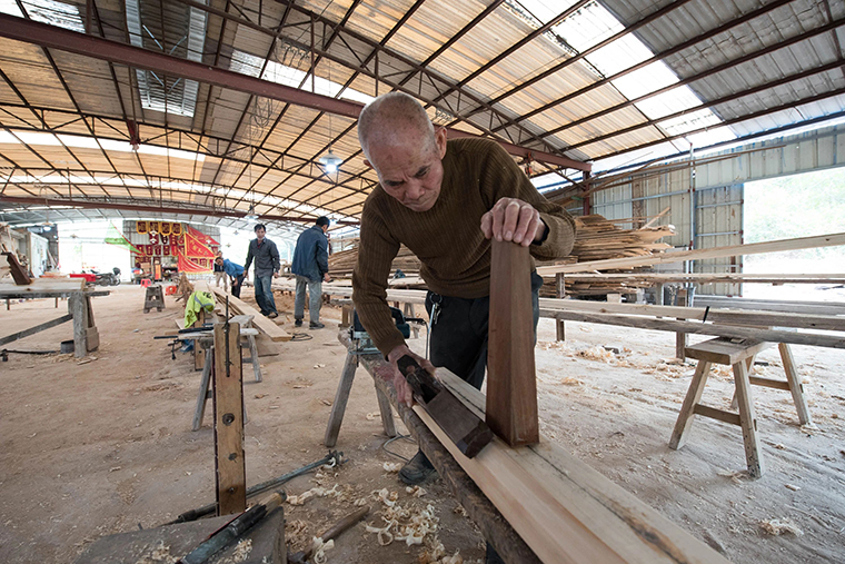 從小船業(yè)務(wù)擴(kuò)展到大船業(yè)務(wù),首先需要調(diào)整的便是選材策略。制作大型龍舟需要一整條無瑕疵的原木,對樹木長度、直徑和筆直程度都有更高要求,為了確保原材料的質(zhì)量,李保安每隔一兩年就會和兩個兒子開車到廣西,親自挑選適合龍舟制作的木材。