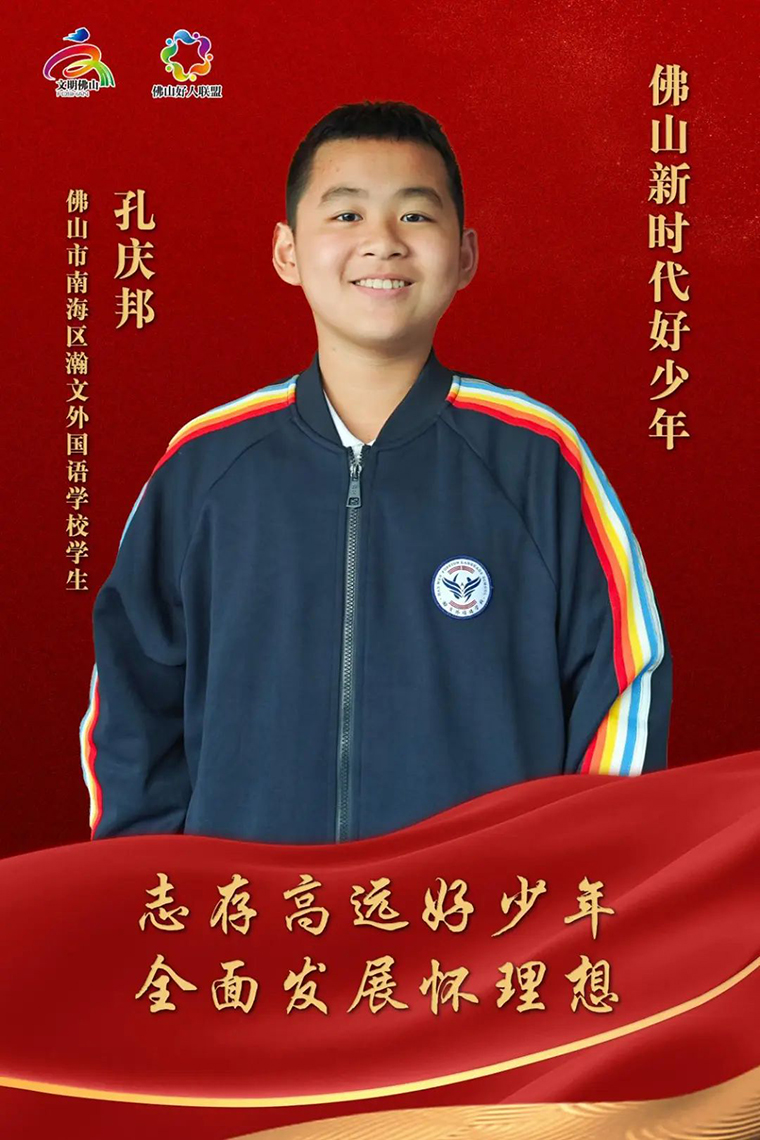 他就是佛山市南海瀚文外國(guó)語學(xué)校七年級(jí)六班學(xué)生、學(xué)校少先隊(duì)副大隊(duì)長(zhǎng)孔慶邦。