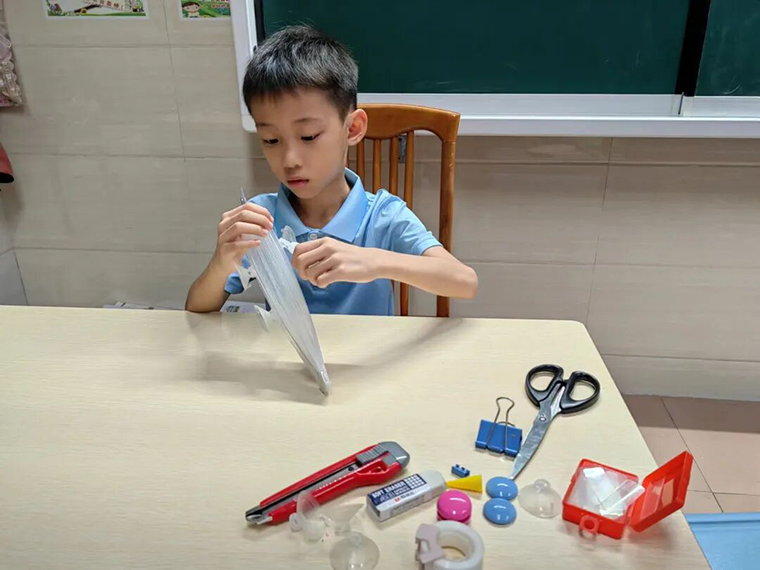 正在動(dòng)手設(shè)計(jì)小發(fā)明的陳俊成