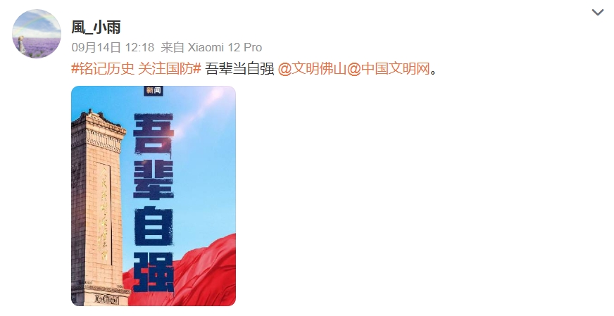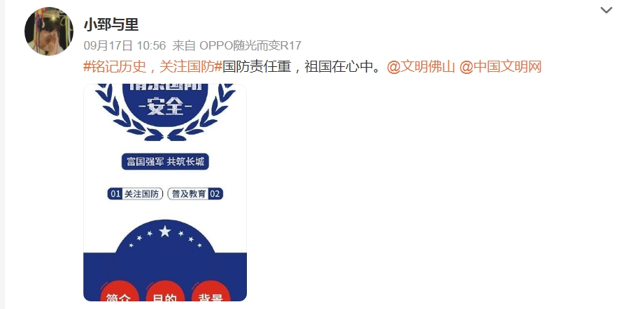 導(dǎo)語: 9月將迎來抗戰(zhàn)勝利日、烈士紀(jì)念日、全民國防教育日等重要節(jié)點。為賡續(xù)共產(chǎn)黨人精神血脈,深化全民國防教育,市文明辦開展“銘記歷史 關(guān)注國防”網(wǎng)絡(luò)文明傳播活動,邀請市民網(wǎng)友參與互動。